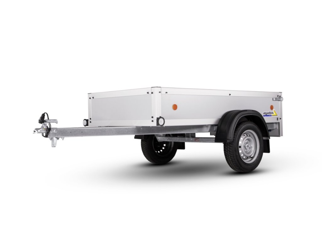 Provedení s "V" ojí, překližkové světle šedé bočnice, 13" kola, 13pólová elektroinstalace+žárovková světla, podlaha je vyrobená z voděodolné protiskluzové překližky o síle 15 mm, 4 ks kotvících ok.