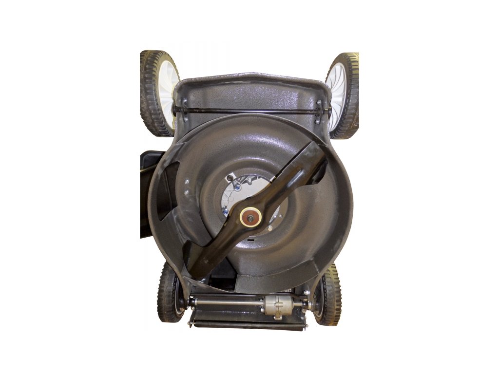Velká pogumovaná sendvičová kola jsou uložena v oboustranných kuličkových ložiscích , což zajišťuje snadný a hladký pohyb i v náročném terénu. Kola zároveň tlumí nárazy a přispívají ke stabilitě během sečení.