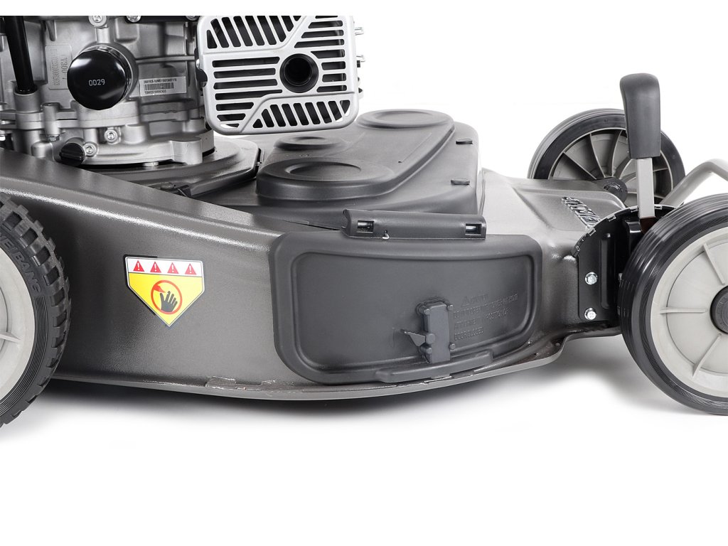 -Tělo sekačky je vyrobeno z kvalitní oceli, která zajišťuje vysokou odolnost vůči mechanickému poškození, korozi i dlouhodobému opotřebení. Masivní přední nárazník chrání stroj před poškozením při nárazech do obrubníků, stromů nebo jiných překážek.
