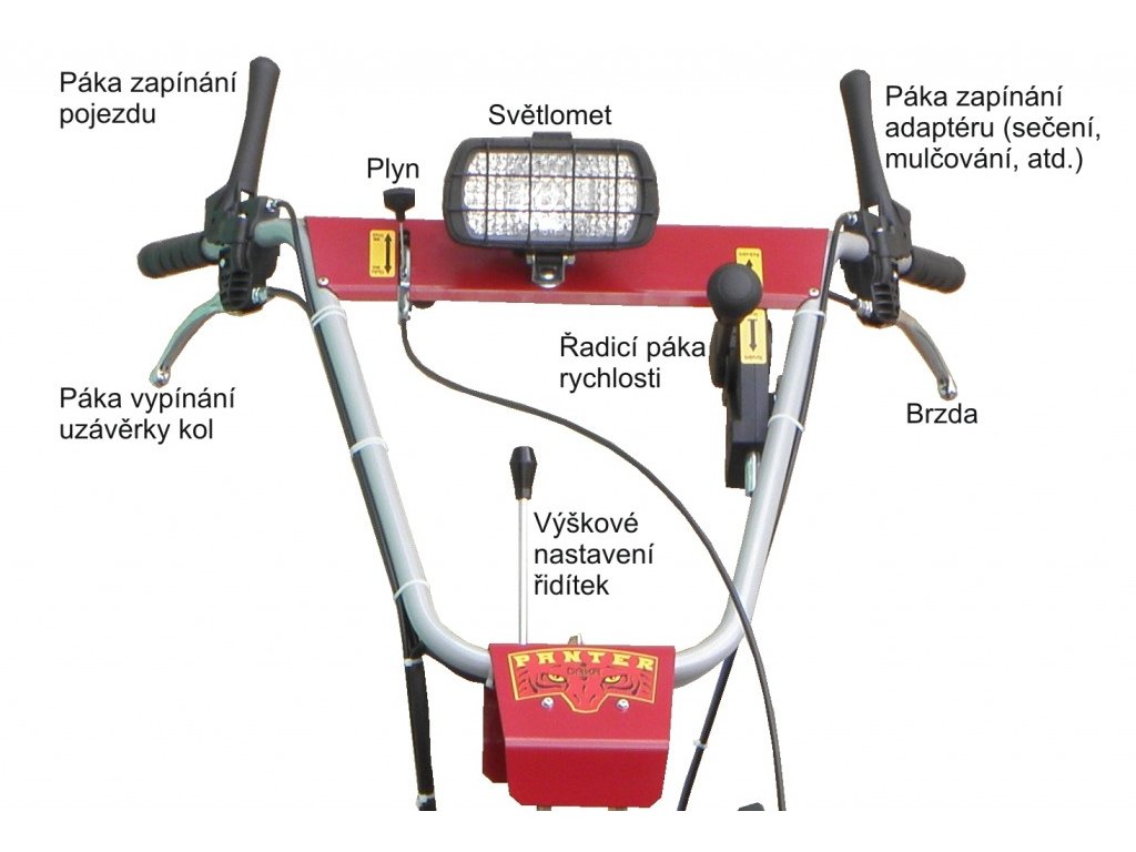 Pohonná jednotka Panter FD3-500 s motorem Briggs&Stratton I/C, Powerbuilt OHV má 500 cm3 a výkon 15,5 HP, disponuje nápravou s diferenciálem, dále má uzávěrku a hydrostatickou převodovkou s plynulou změnou rychlosti dopředu i zpátečky. Pro nastartování můžete využít klíček jako u automobilu, ale ani vybitá baterie Vás neomezí, protože motor je vybavený zcela nezávislým záložním ručním startérem.