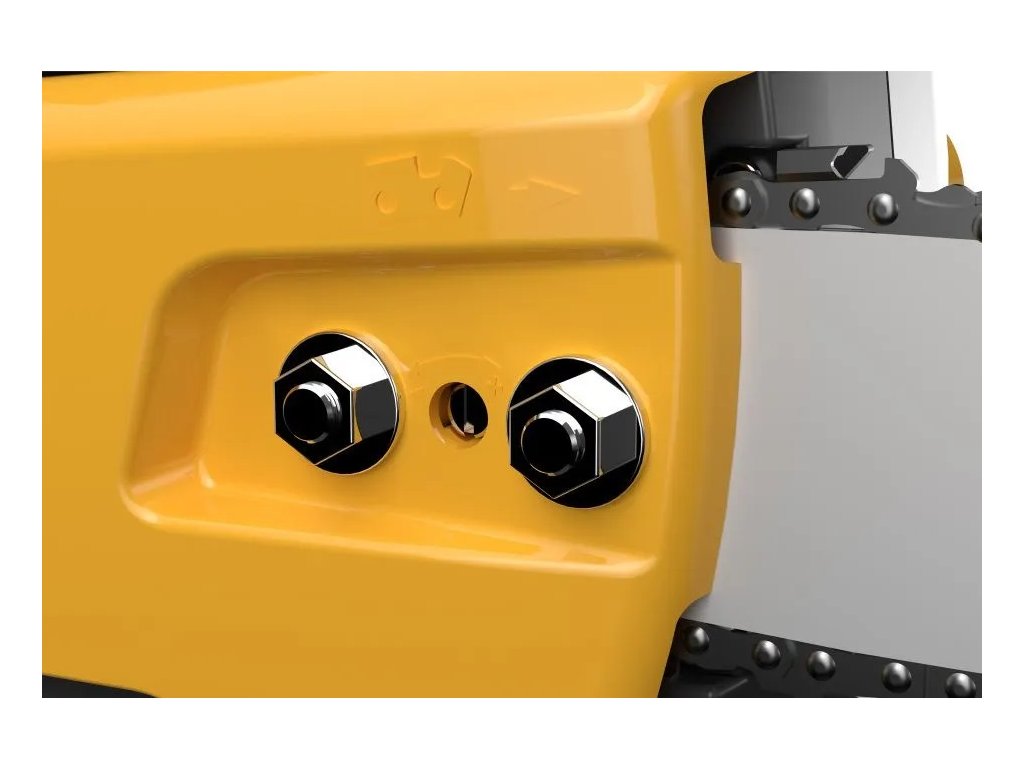 Napínání řetězu je snadné díky integrované matici na boku krytu řetězu. Pomocí volicích tlačítek můžete přepínat rychlost řetězu: zvolte 16 m/s, chcete-li šetřit energii akumulátoru, nebo 20 m/s pro rychlejší řezný výkon bez odporu. A chcete-li znát základní údaje, jako je rychlost, úroveň nabití akumulátoru a vypnutí/zapnutí brzdy, rychlým pohledem na LED diody na ovládacím panelu ihned zjistíte, co potřebujete vědět – dokonce i na silném slunečním světle. Hladinu oleje pro mazání řetězu můžete zkontrolovat, pouhým pohledem na průhledné okénko nádrže.