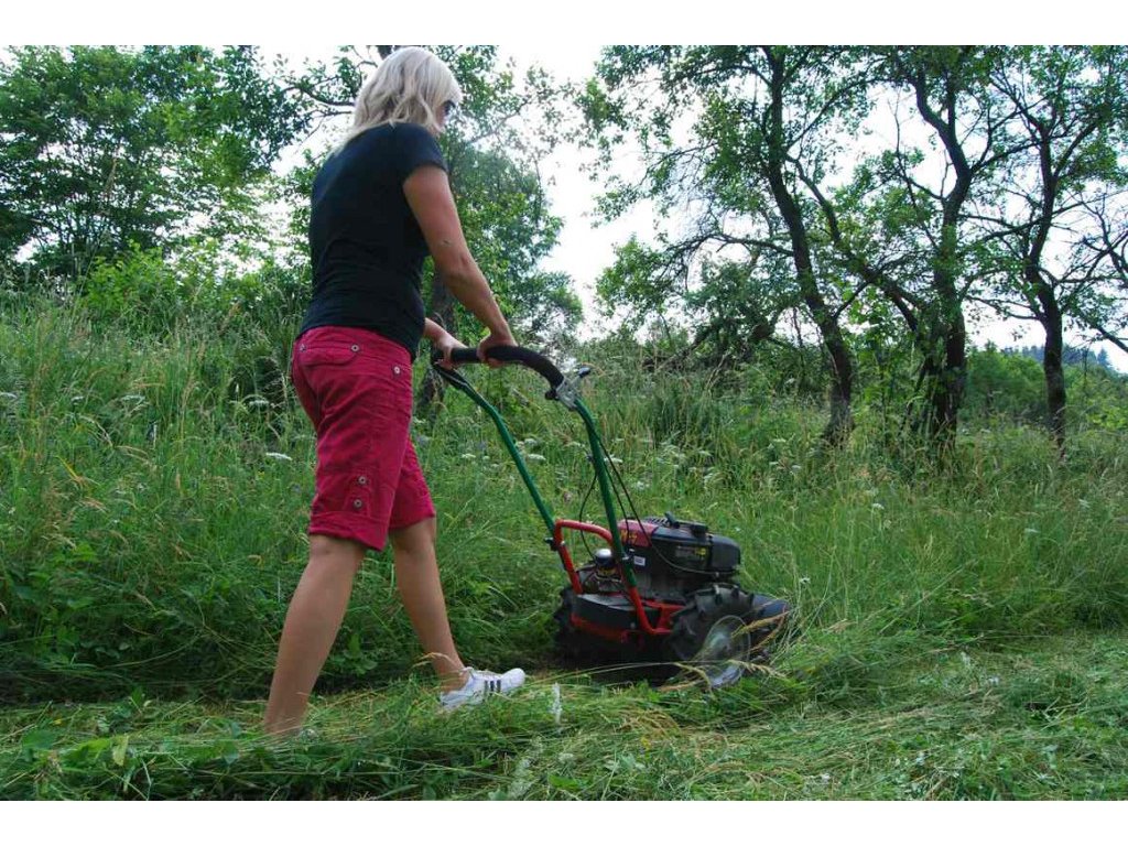 Stroj má dělenou nápravu, která drží při zapnutém pojezdu sekačku ve směru sekání a nevybočuje na nerovnostech, ale umožňuje snadné zatáčení.