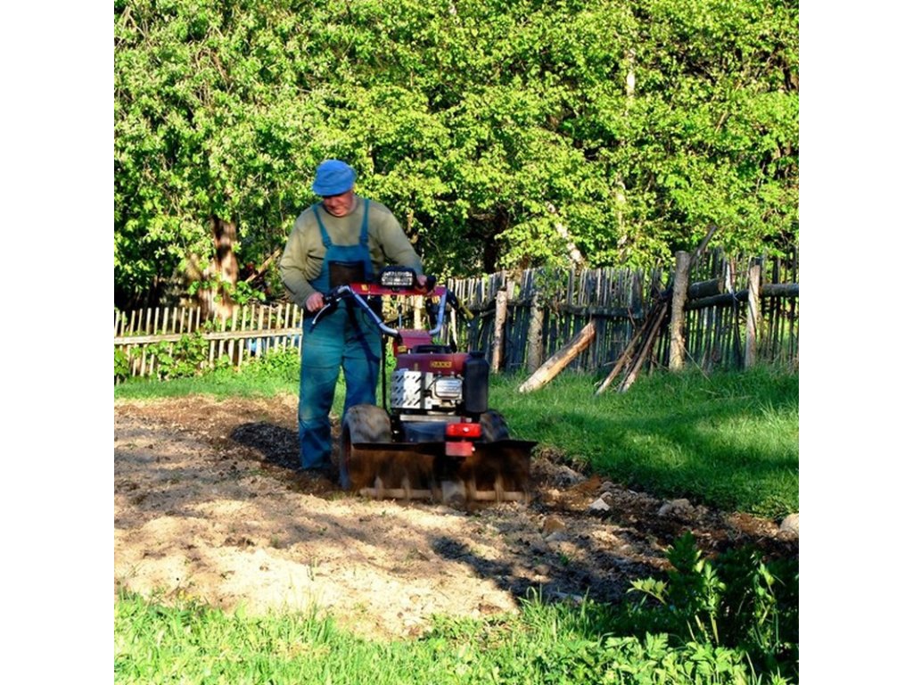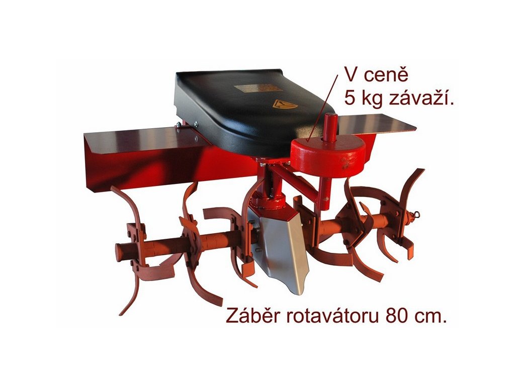 Rotavátor vám dobře poslouží na jaře i na podzim. Na začátku sezony s ním nakypříte záhony k sázení a na podzim zapracujete hnůj, či jiné hnojivo do půdy. Na rozdíl od jednoúčelových strojů je náš profi rotavátor ROT převodován mnohem více do rychla. Účinnost je tedy mnohem vyšší a práce s ním rychlejší. Je používán profesionálními zahradníky ke srovnání terénu při dokončovacích pracích na zahradách. Součástí stroje je 5 kg závaží, radlička a výztuha řidítek pro FD-2. Při zpracování do větších hloubek a u těžších půd doporučujeme přidat další závaží. Rotavátor je sestavěn ze 6 hvězdic o průměru 30 cm a záběru 80 cm, po zúžení na 4 hvězdice je záběr 54 cm. Vlastní zpřevodování adaptéru se děje převodovkou v poměru 1:7,5, klínový řemen slouží k přenosu otáček, nikolv k vlastnímu zpřevodování.