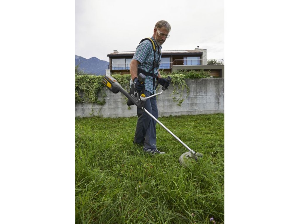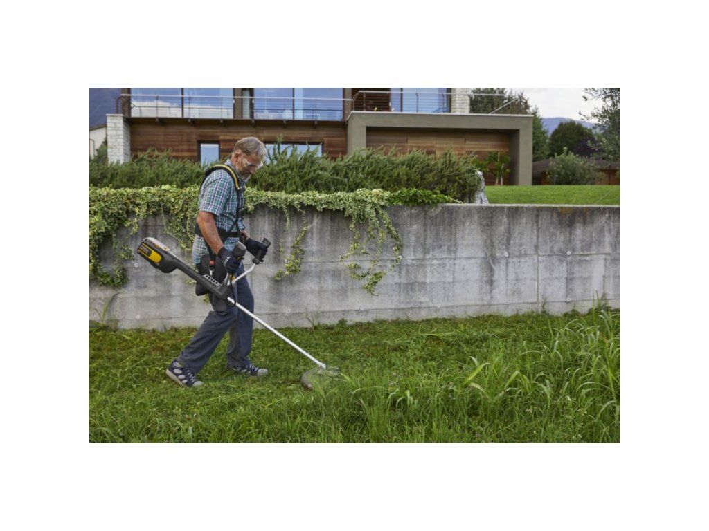 STIGA BC 700e B je prvním opravdovým křovinořezem napájeným akumulátorem a s váhou pouhých 5,5kg . Doporučená 48V 4Ah baterie poskytuje až 60 minut nepřetržité práce na jedno nabití. Jeho robustní, ale lehká ergonomická konstrukce a inteligentní funkce snadno splní i ty nejnáročnější úlohy. Nerovnoměrný terén, strmý svah nebo hluboký příkop? Díky pěti pozicím háku postroje vám tento křovinořez poskytuje rovnováhu a kontrolu, ať jste kdekoli. Pomocí ovladače na rukojeti s LED displejem a spouštěcím spínačem plynule regulujete rychlost podle potřeb. Duální strunovou hlava Bump & Work nebo 3T čepel vám pomohou zdolat i ty náročnější úkoly. S šířkou záběru 38 cm a vysokým točivým momentem může tento křovinořez snadno sekat hustou, vysokou a dokonce i mokrou trávou.