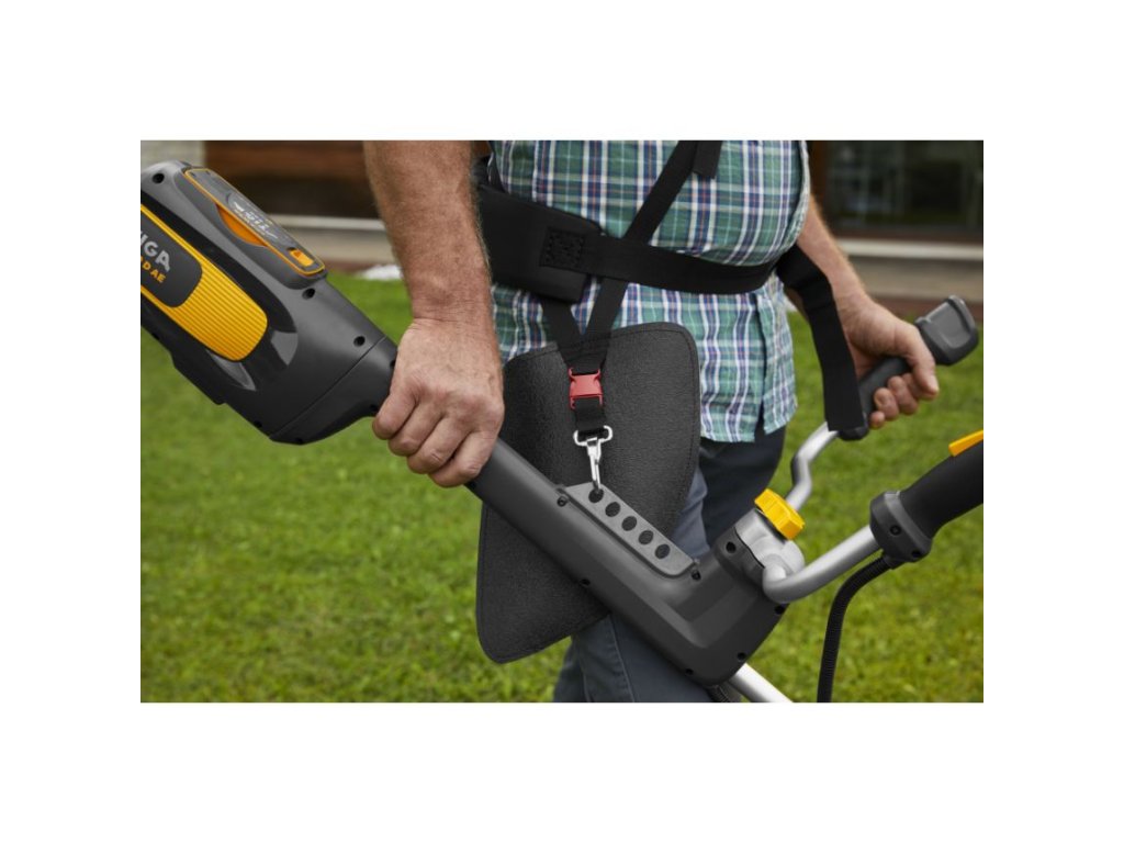 Plnohodnotný akumulátorový křovinořez STIGA SBC 700 D AE vám dává konstantní výkon a rychlost kontrolu. S baterií E-Power 440 48V 4Ah a pokročilým 500W bezkartáčovým motorem získáte až 60 minut nepřetržitého sekání. Každá část tvoří stroj pevným, vyváženým a bezpečným. Hák popruhu můžete připnout do pěti poloh, což je ideální pro práci ve svahu a členitém terénu.