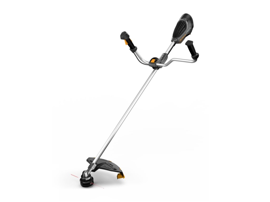 Křovinořez BC 900e B poskytuje výkon benzínového křovinořezu o objemu cca 45 ccm,ale bez potíže s tankováním a emisemi. Dvě 48V baterie 7,5Ah zajišťují nepřetržité sekání až 70 minut. A protože jsou uloženy v pohodlném batohu na zádech, dosáhnete optimální rovnováhy, hmotnosti a výkonu. Od velkých zahrad a farem až po městské parky, ať jste kdekoli, díky ergonomickému designu řidítkové rukojeti a kompaktnímu krytu je snadné sečení vysoké trávy nebo tvrdé vegetace. Silný bezkartáčový motor o výkonu 1 kW poskytuje vysoký točivý moment a progresivní snižování rychlosti při zachování úrovně hluku pod 96 dbA. A pro snadné ovládání jsou na řídítkách s měkkou rukojetí zobrazeny čtyři integrované LED diody pro monitorování stavu baterie. Strunová hlava se záběrem 43 cm je také vybavena systémem Bump & Work pro rychlé podávání struny. Když je práce hotová, rukojeť se sklopí o 90 °, což usnadňuje přepravu a skladování.