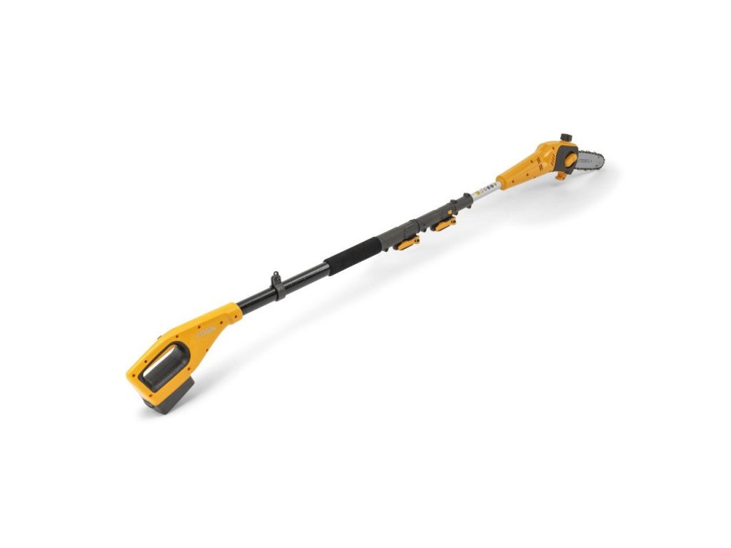 Pokud při prostřihávání vysokých živých plotů, keřů a stromů musíte použít žebřík, ideálním řešením může být sada MT 100e (s akumulátorem 4,0 Ah). Tento akumulátorový univerzální nástroj posouvá prořezávání a zastřihování na novou úroveň snadné manipulace a ovladatelnosti. 20V akumulátor s kapacitou 4Ah přesně zapadá do kompaktní konstrukce, díky čemuž je celý nástroj příjemně vyvážený. Na jedno nabití získáte 70 minut stříhání nebo 20 minut prořezávání. Po zaháknutí univerzálního nástroje do postroje jednoduše připojte nůžky na živý plot nebo prořezávací pilu na konec elegantní 55cm teleskopické tyče a vytáhněte ji na délku až 2,75 m (výška uživatele + nástroj) Pro stříhání živých plotů je 45cm lišta dostatečně dlouhá na to, aby zvládla většinu prací nad hlavou. Díky 18mm rozteči zubů a 112° otočné hlavě si hravě poradí i se středně silnými větvemi. Vysoce kvalitní lišta a řetěz se při prořezávání dostanou i do těch nejužších míst – zatímco automatické olejové čerpadlo bude zajišťovat hladký chod všech součástí prořezávací pily.