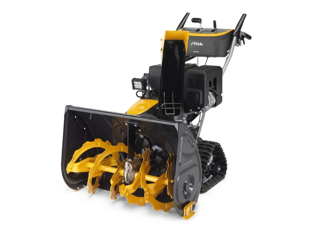 Zbavte se sněhu z každého povrchu a za jakéhokoliv počasí. STIGA ST 976 T je dvoustupňová fréza s pásovým pojezdem, který zajišťuje optimální přilnavost i na svažitém povrchu, poháněná výkonným motorem WS 380 STIGA o objemu 375 ccm. Díky hydrostatické převodovce Hydrogear SST si můžete zvolit různá nastavení rychlosti, což zajišťuje maximální pohodlí. Všechna tlačítka na palubní desce jsou elektrická, včetně otáčení odhozu až o 180° a ovládání deflektoru. Vyhřívané rukojeti a LED světlomety s dlouhou životností zajišťují pohodlné používání i při špatné viditelnosti. Pracovní záběr 76cm a ocelový šnek s pilovými listy o průměru 35 cm umožňují tomuto robustnímu stroji odhazovat sníh až do vzdálenosti 15 metrů.
