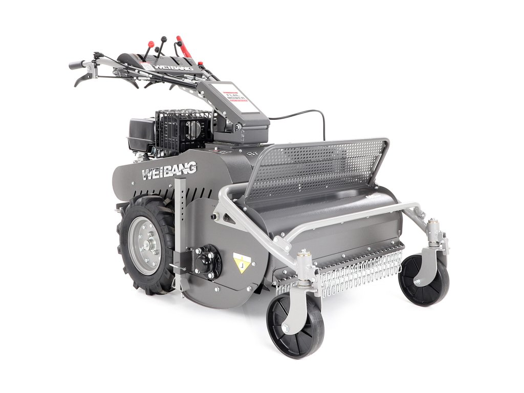 WEIBANG WB GT6813 je cepová mulčovací (kladívková) sekačka vhodná pro likvidaci přerostlé trávy na neudržovaných pozemcích. Pod kovovým šasi vysokou rychlostí rotuje sada kladívkových nožů uchycených na válci, které posečou a podrtí přerostlou trávu, poradí si i s drobnějšími nálety.