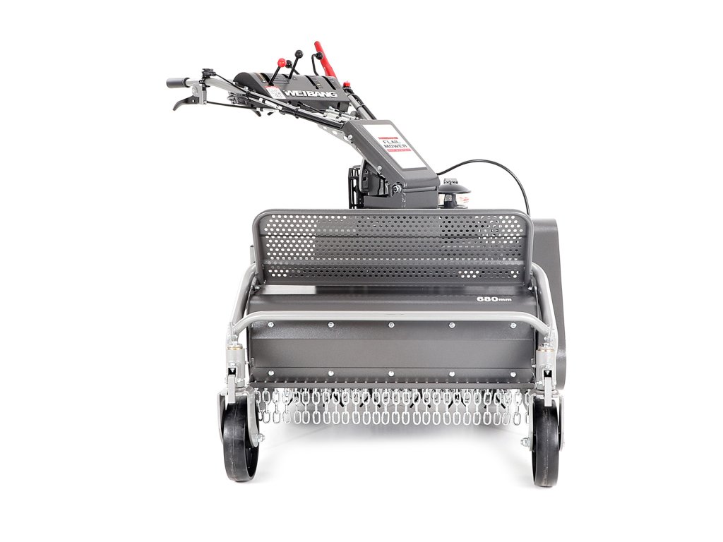 Kolová cepová sekačka WEIBANG WB GT6813 je určena pro sečení vysoko-stéblového plevele na velkých plochách a ve složitém terénu. Je osazena benzínovým motorem o výkonu 9HP a nejnovějším systémem plynule měnitelné převodovky Weibang (CVT). Cepová sekačka je vybavena širokou žací hlavou s ocelovými čepelemi typu Y, díky kterým dokáže během okamžiku osekat všechny velké plochy. Řidítka lze rychle nastavit do vertikální, tak i horizontální polohy tak, aby vyhovovala náročným provozním podmínkám ve složitém prostředí.