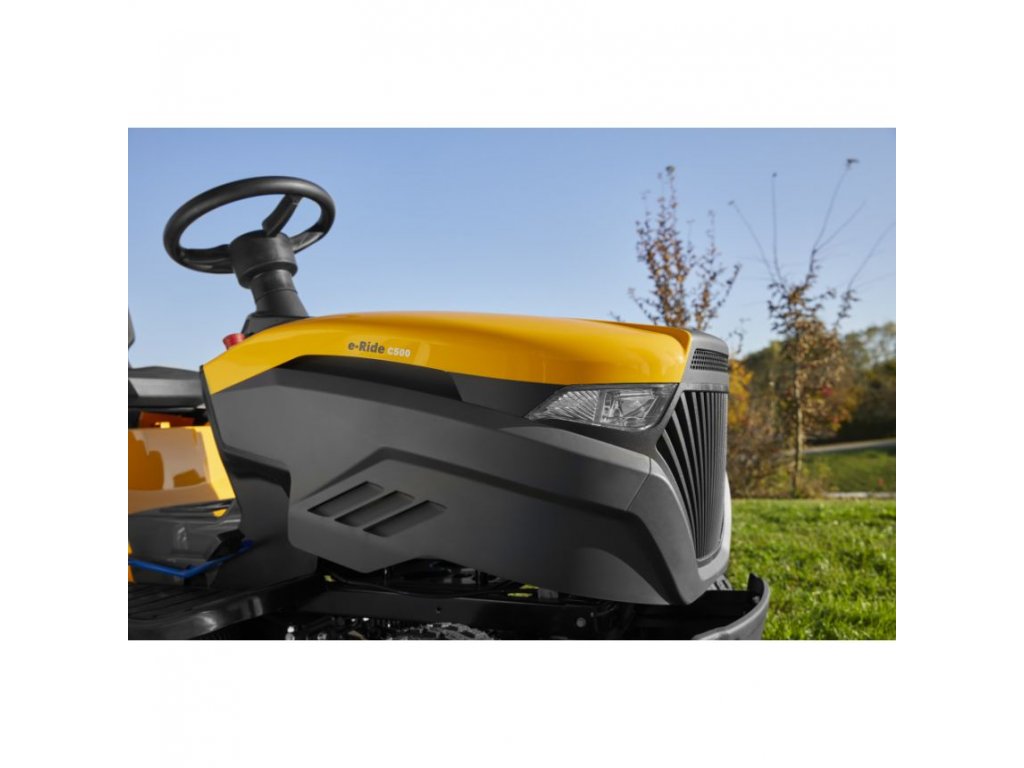 „Impozantní 48V 40Ah baterie e-Ridu C500 poskytuje dostatek energie pro sekání až 4000 m2 za přibližně 60 minut a na jedno nabití. A protože je napájen baterií, zažijete méně hluku, méně vibrací a žádné emise benzínového zahradního traktoru na trávu. Výkonný 1,2 kW motor s rozvodovkou, vám umožní dosáhnout rychlosti až 9 km / h, zatímco dva sekací motory o celkovém výkonu 3 kW perfektní seč bez řemenů, řemenic a nákladné údržby. Stačí se posadit, zapnout a vyrazit.